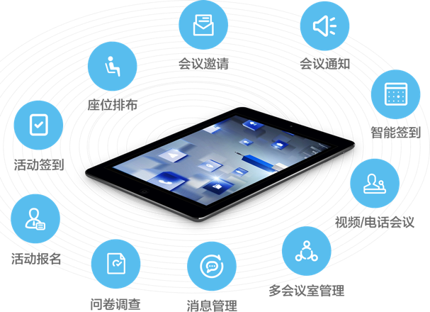 打通从会前、会中到会后的线上线下全流程的会务服务。